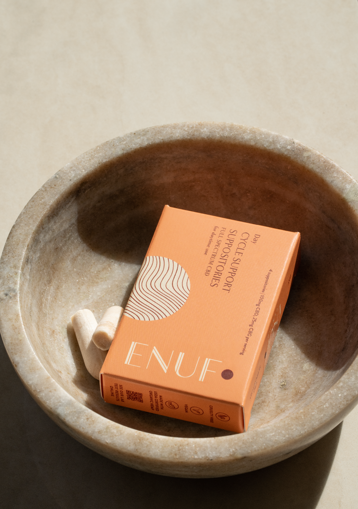 ENUF BRINGS YOU A NEW RELATIONSHIP WITH YOUR CYCLE. THROUGH ORGANIC, WHOLE PLANT PERIOD RELIEF.